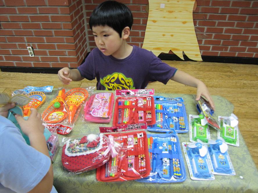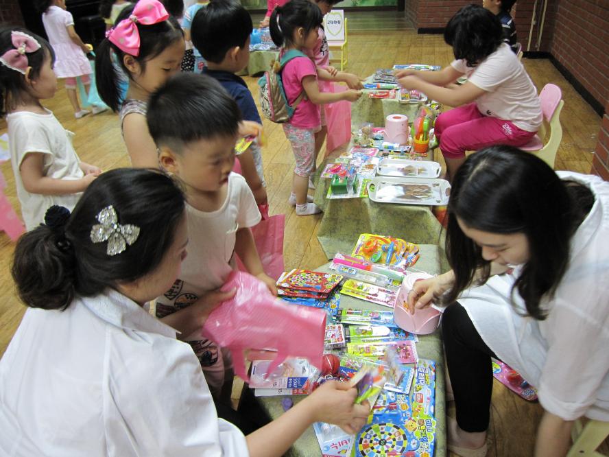 유치부에서는 이제껏 모았던 달란트로 달란트 잔치가 열렸어요.