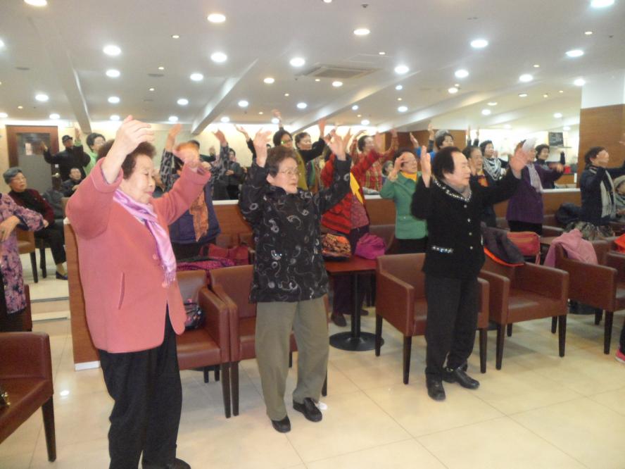 신바람이 나셔서 함께 따라하시는데 어린아이와 같은 모습으로 손뼉치고 깔깔 웃음으로 함께 한 즐거운 시간이 되었습니다.