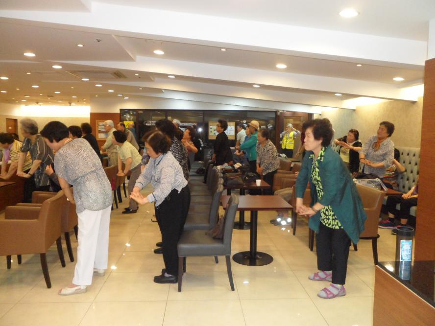 모든 어르신들 눈이 초롱초롱 빛이 났습니다. 수지침 효과가 있는 손 지압기를 선물로 받으시는 어르신들은 모두 열심히 운동을 하셨어요~~ㅎㅎ