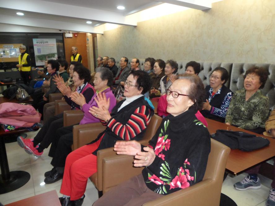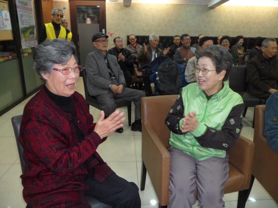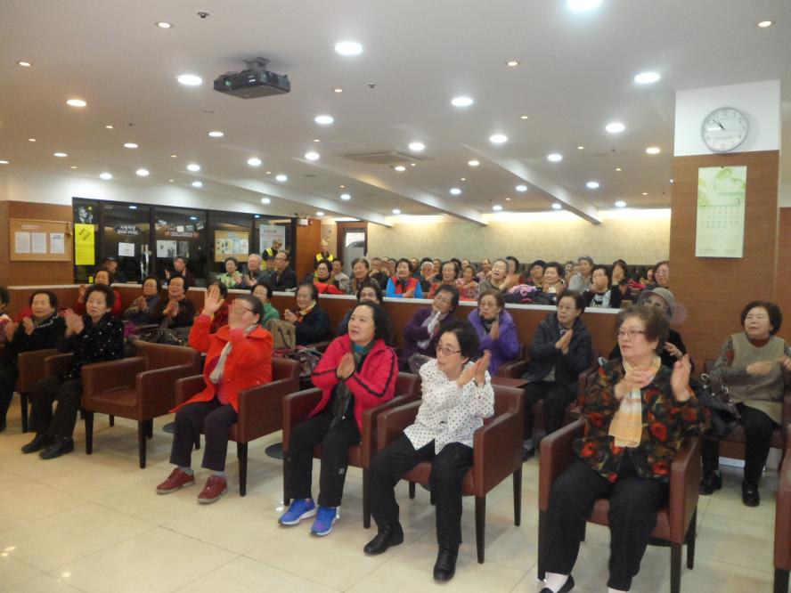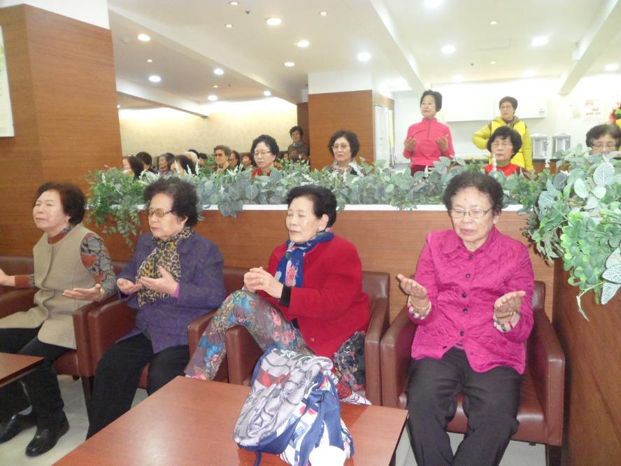 신바람이 나셔서 함께 따라하시는데 어린아이와 같은 모습으로 손뼉치고 깔깔 웃음으로 함께 한 즐거운 시간이 되었습니다.