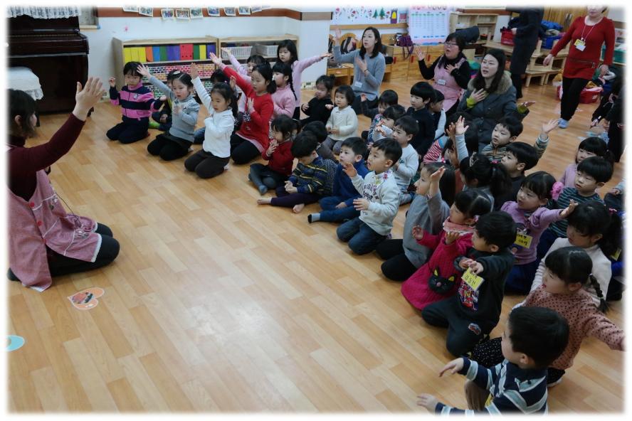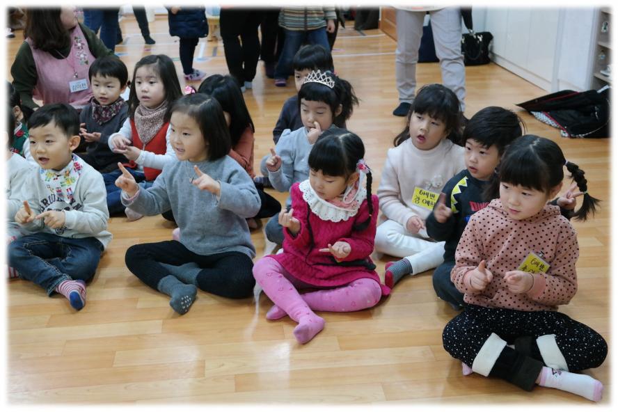 6세,7세 언니 오빠들이 5세 새로운 친구들을 위해 환영인사도 하고