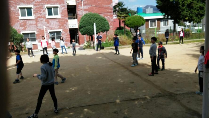 예배 전 일찍 온 친구들이 운동장에서 몸풀기(?) 운동을 하는 모습입니다! ^^